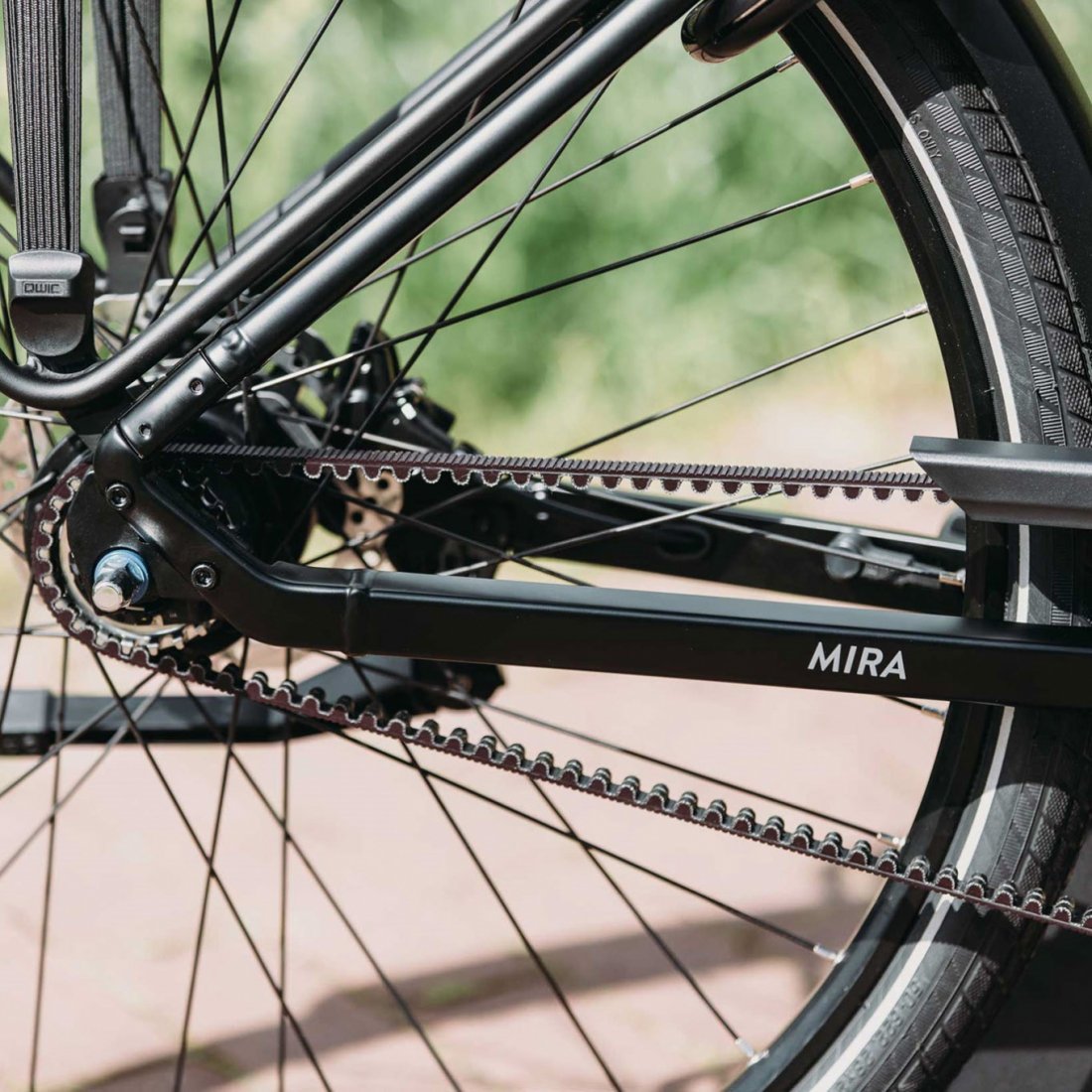 De Mira Tour is met een Riemaandrijving van carbon en krasvrij kunststof uitgerust. Daardoor is dit model bijzonder duurzaam, onderhoudsarm, soepel en stil.